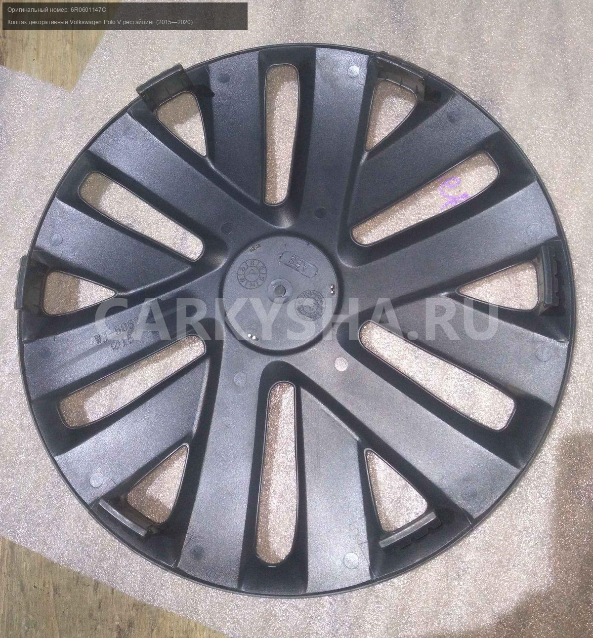 Колпак декоративный Volkswagen Polo V рестайлинг (2015—2020) Volkswagen Polo оригинальный номер 6R0601147CКолпак декоративный Volkswagen Polo V рестайлинг (2015—2020) Volkswagen Polo оригинальный номер 6R0601147C